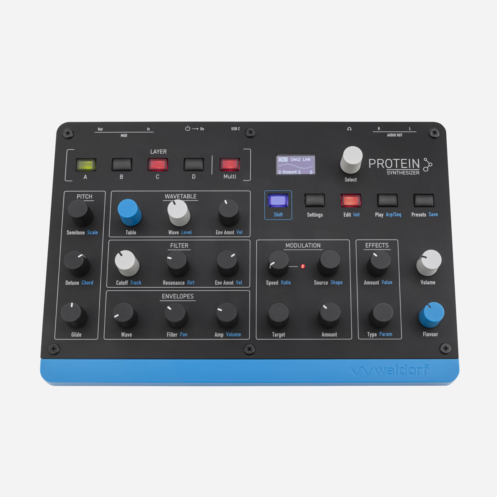 Protein links back to the very beginnings of Waldorfs instrument makings but interprets the original ideas in a contemporary and surprising way. It is a powerhouse packed into a compact and portable form factor with an easy to use and hands-on interface.